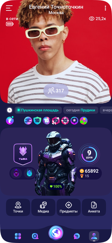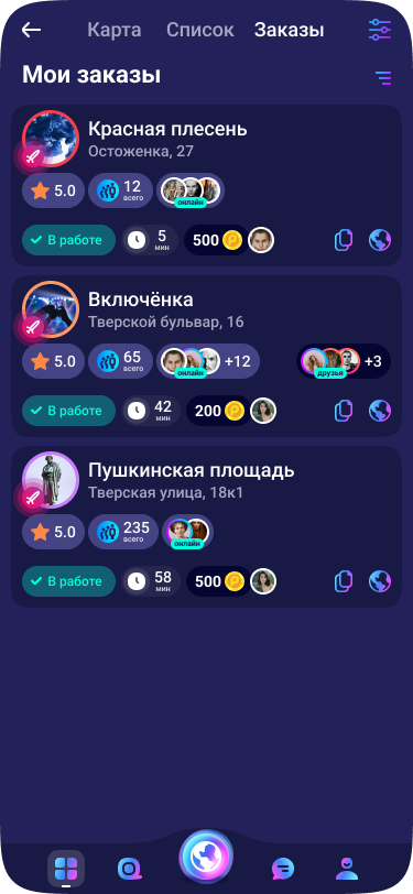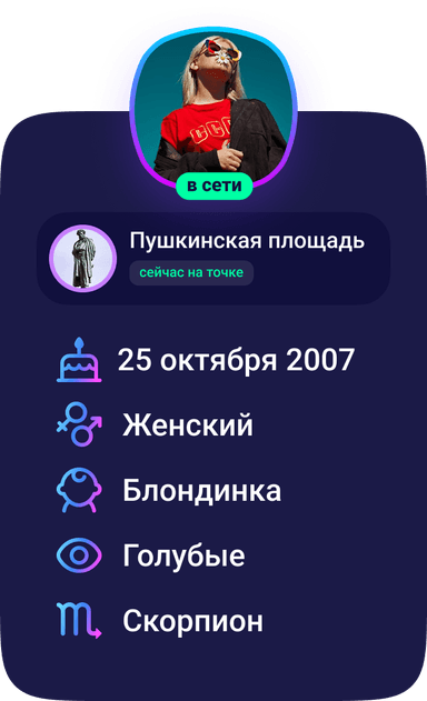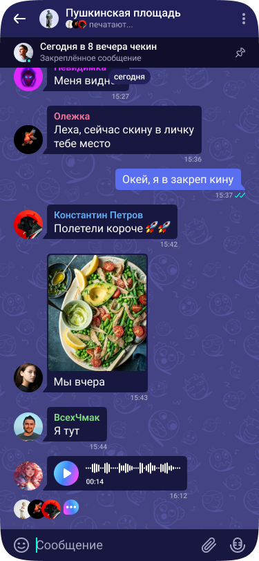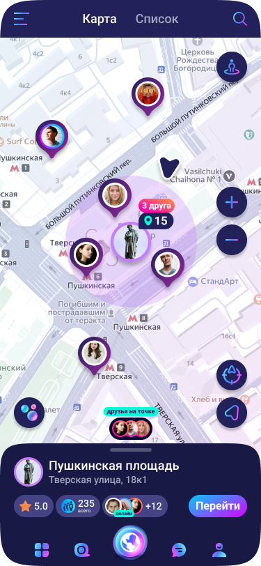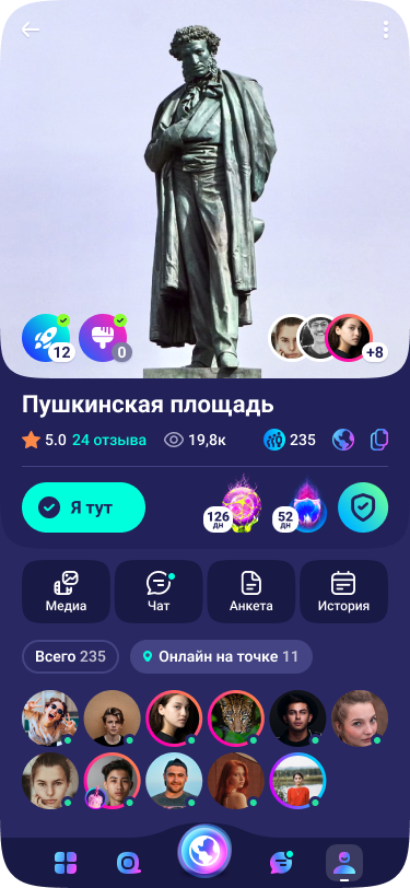 Общайся в чате точки, делись яркими моментами в ленте событий и смотри кто сейчас на точке