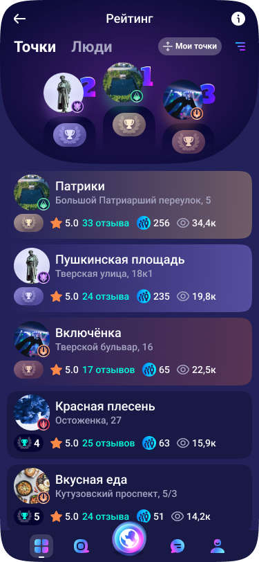 Делись своими впечатлениями с точек, оценивай и комментируй других