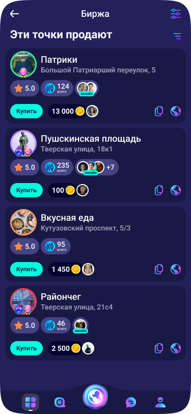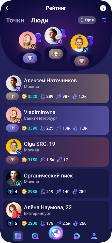 Общайся в чате точки, делись яркими моментами в ленте событий и смотри кто сейчас на точке